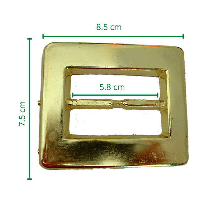 Cada Hebilla de Santa está fabricada con materiales metálicos duraderos que soportan el uso constante sin perder su brillo ni deformarse. Su estructura está diseñada para permitir el paso de cintas o correas de diferentes anchos, facilitando su aplicación en prendas o accesorios.